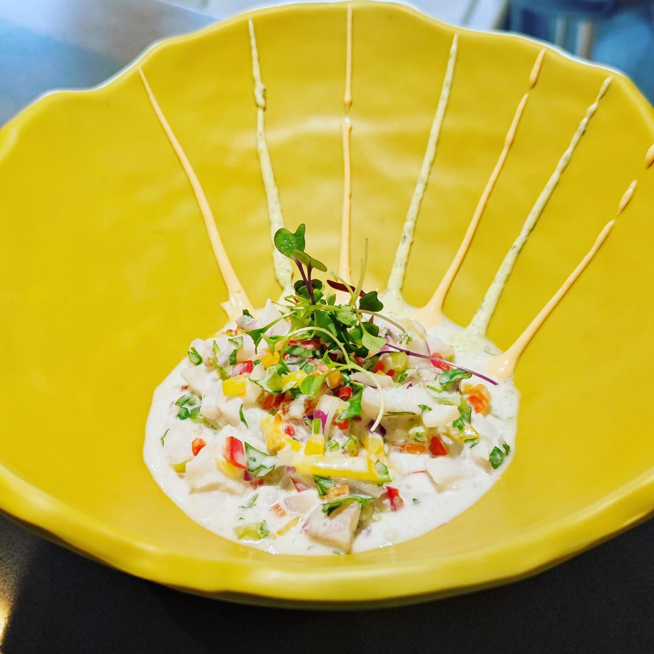La experiencia gastronómica en Made Restaurante es realmente especial. El restaurante está situado cerca del mar, con vistas al puerto deportivo en el centro de Villajoyosa. Una vez que entre, verá que el ambiente es relajado y acogedor. Para grupos más grandes, hay una terraza al aire libre con una vista al puerto deportivo. Matthias y su equipo esta dedicado a darles el mejor servicio, lo que es importante dando la naturaleza sensible de la comida que se sirve. Una vez que haya seleccionado su entrante o plato principal o postre, el personal le traerá pan sin gluten con una selección de delicioso aceite de oliva y mantequilla.